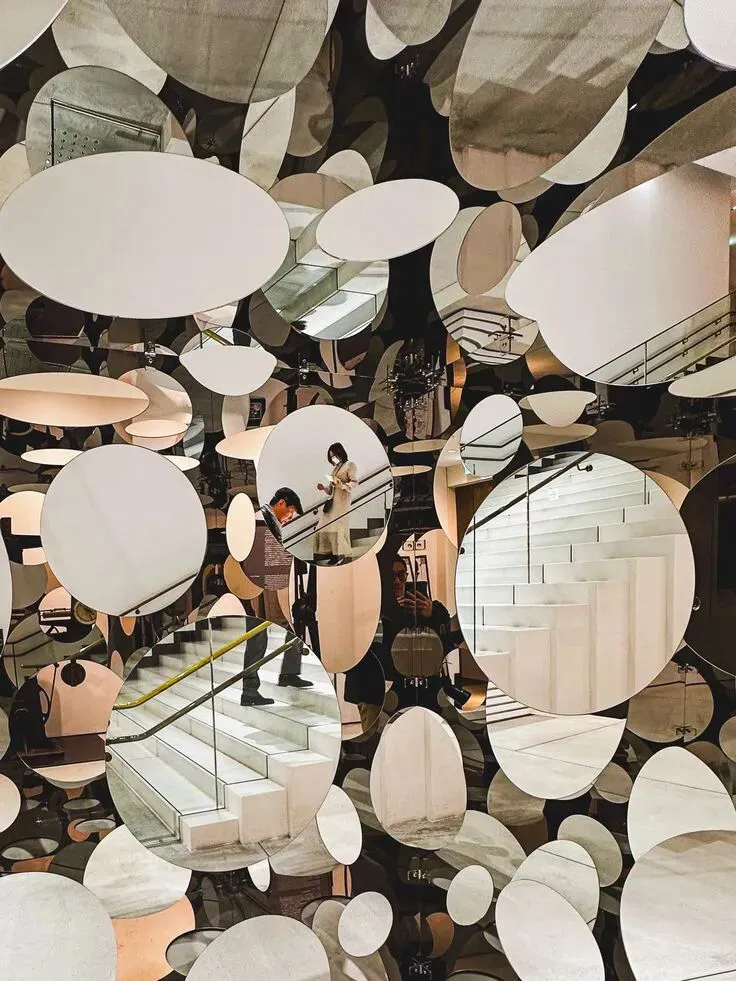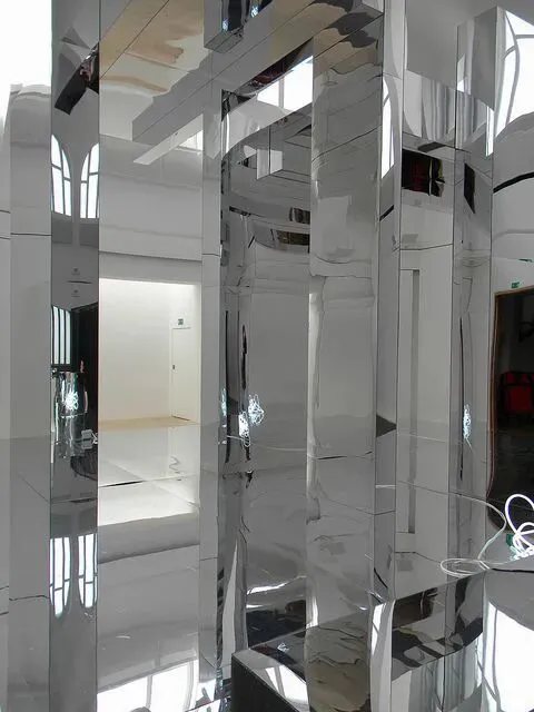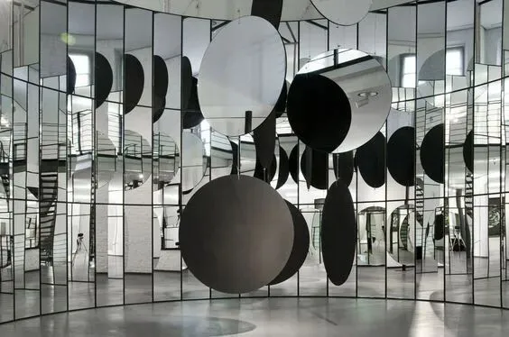 2、局部装置点缀:用镜面膜拼接成曲面、圆形等造型,作为装置的一部分,强化虚实对比,适合当代艺术装置展。