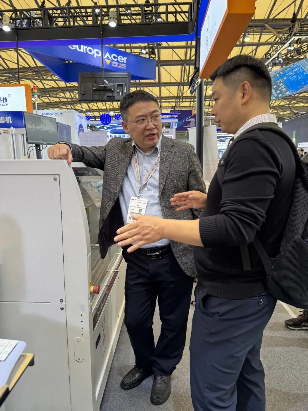 慕尼黑上海电子生产设备展进入第二天,现场依旧人气高涨,行业交流氛围愈发浓厚。我司展位[E3.3538]前,咨询洽谈的身影络绎不绝,热度丝毫不输首日。