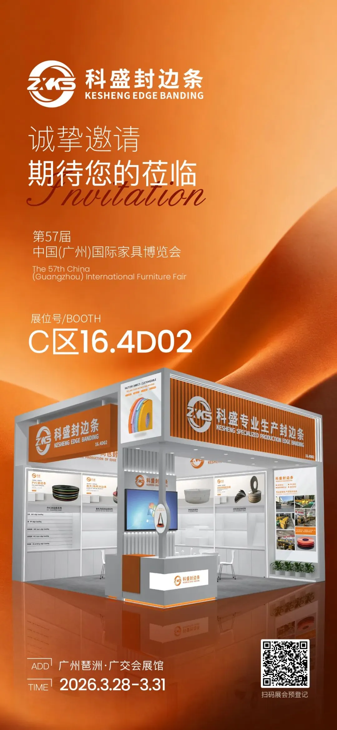感谢您长期以来对科盛封边条的关注与支持!值此第57届中国进出口商品交易会(广交会)举办之际,我们诚挚邀请您莅临科盛展位参观指导。