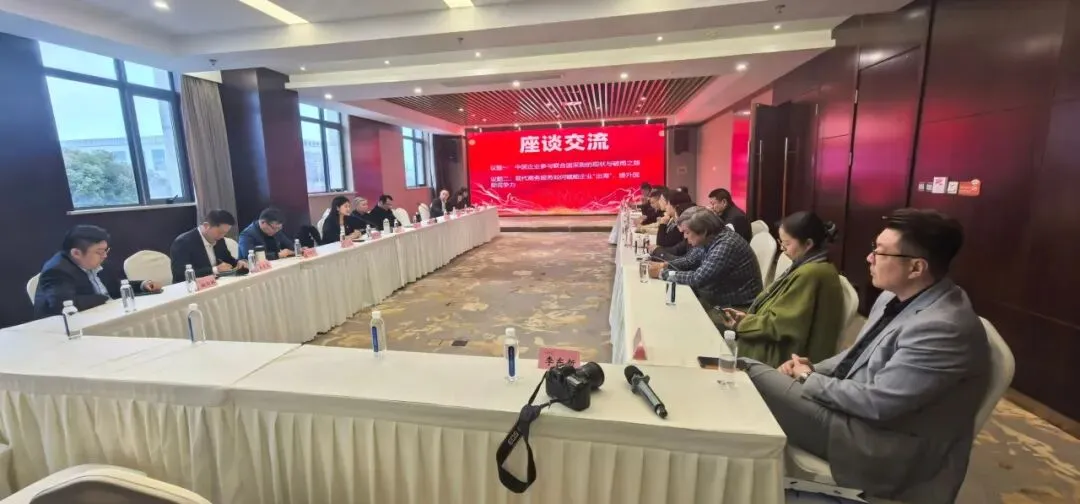 随后,部分参会人员进行了交流座谈。中国联合国采购促进会会长王栩男、秘书长蔡璐、分会主任委员路宝胜,与企业家代表展开深入交流,围绕“中国企业参与联合国采购的现状与破局之路”、“现代商务服务如何赋能企业"出海",提升国际竞争力”两大核心议题展开热烈探讨。