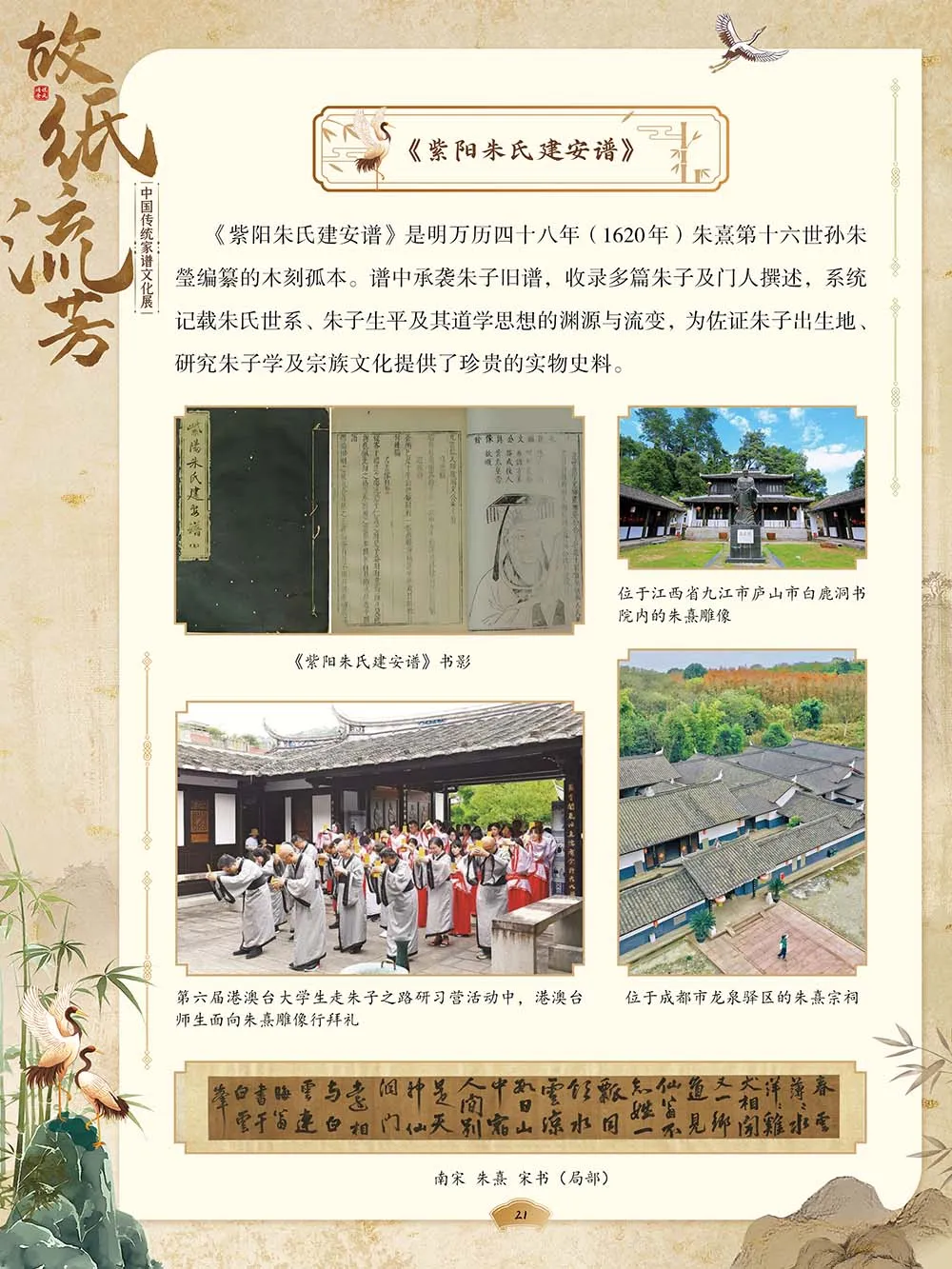 这些历经岁月洗礼的谱牒,蕴藏着西周单氏家族辅佐王室的功勋,承载着朱熹后裔绵延不绝的文脉薪火,记述着徐荣村携“荣记湖丝”世博夺魁的荣光,更联系着闽台赖氏跨越海峡的血缘羁绊。本展通过文物、文献与史料的多维呈现,邀您共同追溯这绵延数千年的“纸上血脉”,于谱页间体悟家族与家国的深厚联结,感受中华文脉的生生不息。
