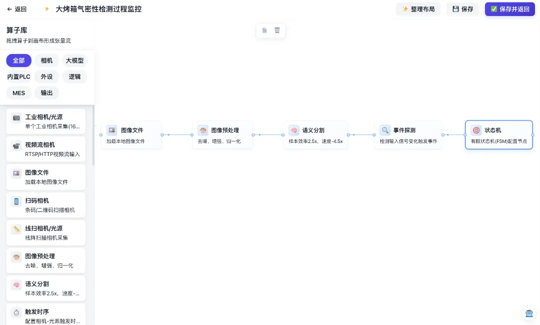 针对软件的现场交互,崔忠伟强调了工业场景对可靠性的严苛要求。因此,系统采用了全可视化的拖拽式界面,而非单纯的自然语言对话。现场人员无需编写代码,即可完成检测逻辑的配置。