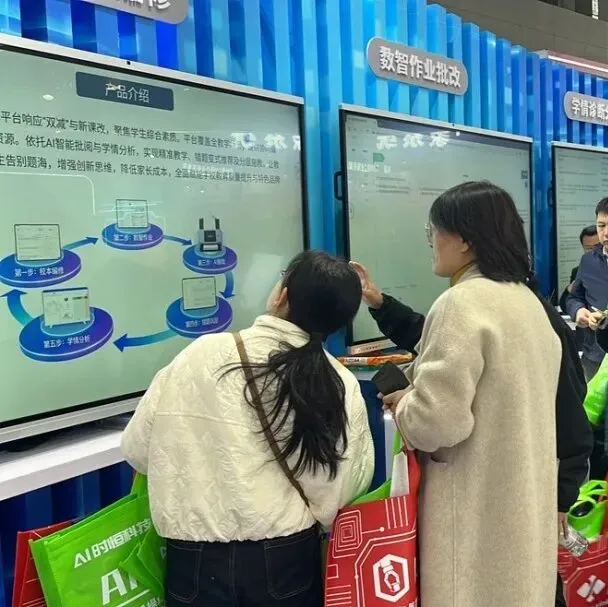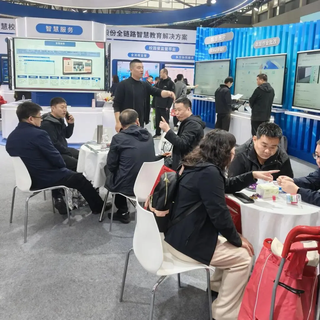 展会现场,从 AI 智能作业批阅、精准学情分析,到智慧教学、校园综合管理等全链路解决方案,直观展现了科技赋能教育的创新实践。众多参展人员、校方代表与行业伙伴驻足了解、深入交流,现场洽谈氛围热烈融洽。