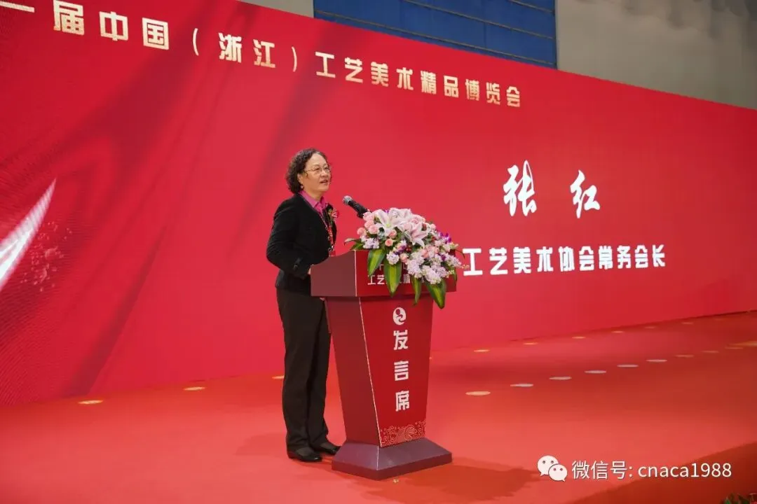 5月12-14日,中国(浙江)工艺美术精品博览会在绍兴国际会展中心举办。中国工艺美术协会副会长张红参加开幕式并与其他嘉宾领导共同为博览会启动开幕。