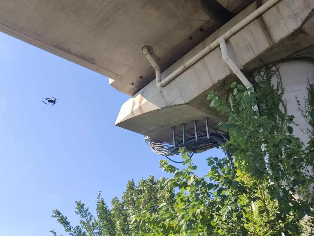 正在地铁高架段巡检的无人机。青岛地铁 供图