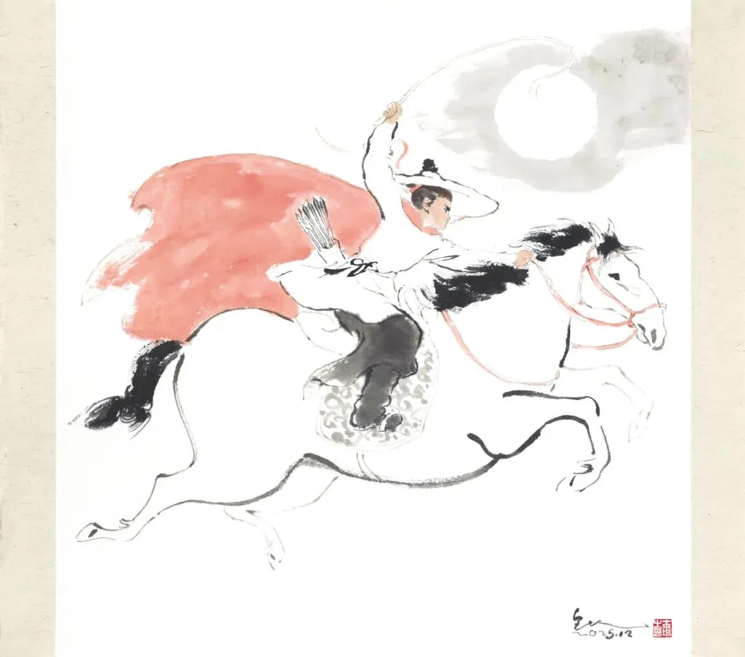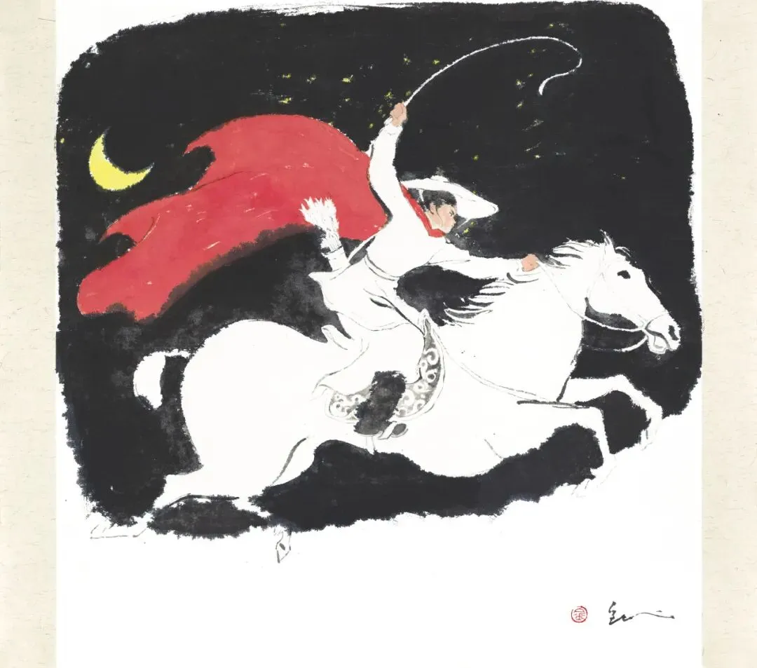 两幅水墨的《马蹄疾》,少年日夜兼程,水墨晕染,更显国风气势。