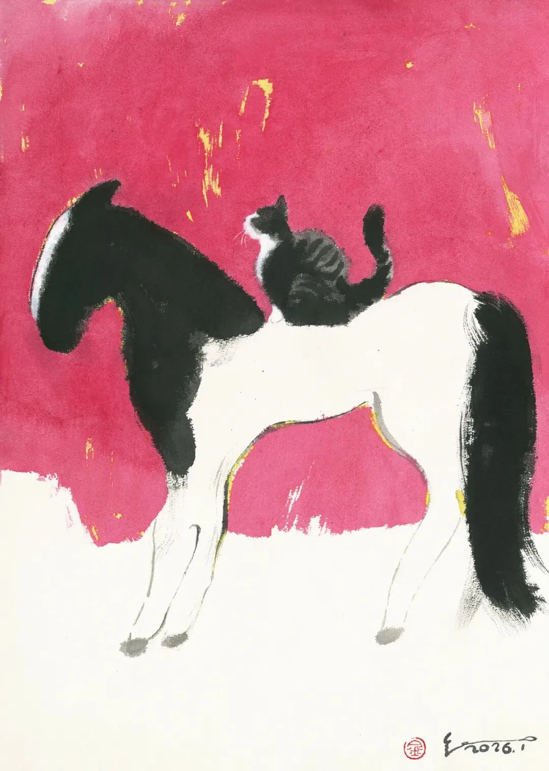 金老师画的猫和马很有“松弛感”