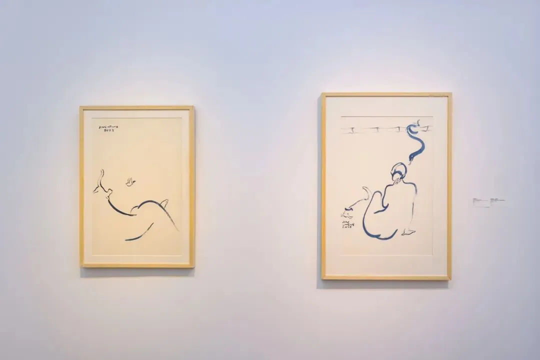 展览展出六十余件水彩、水墨与丙烯作品,青花小猫灵动可爱,画中的少女温柔恬静,猫咪与少女相互陪伴,中式笔墨里藏满了细腻与浪漫。
