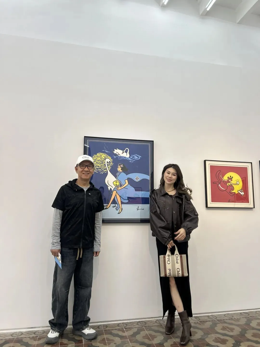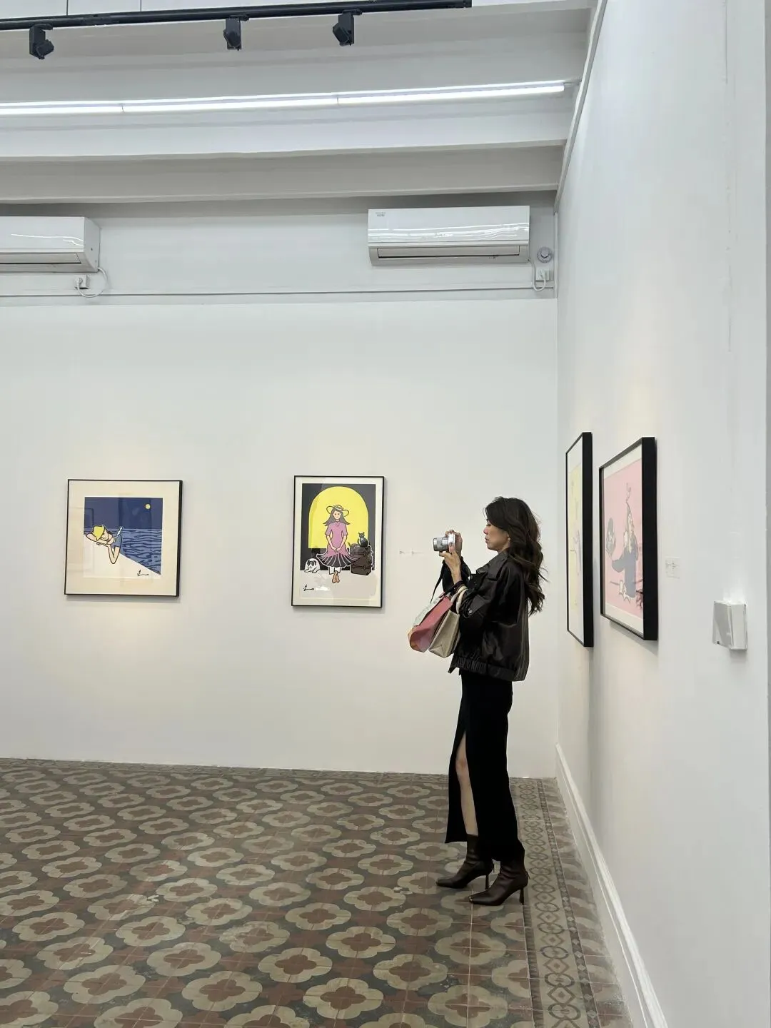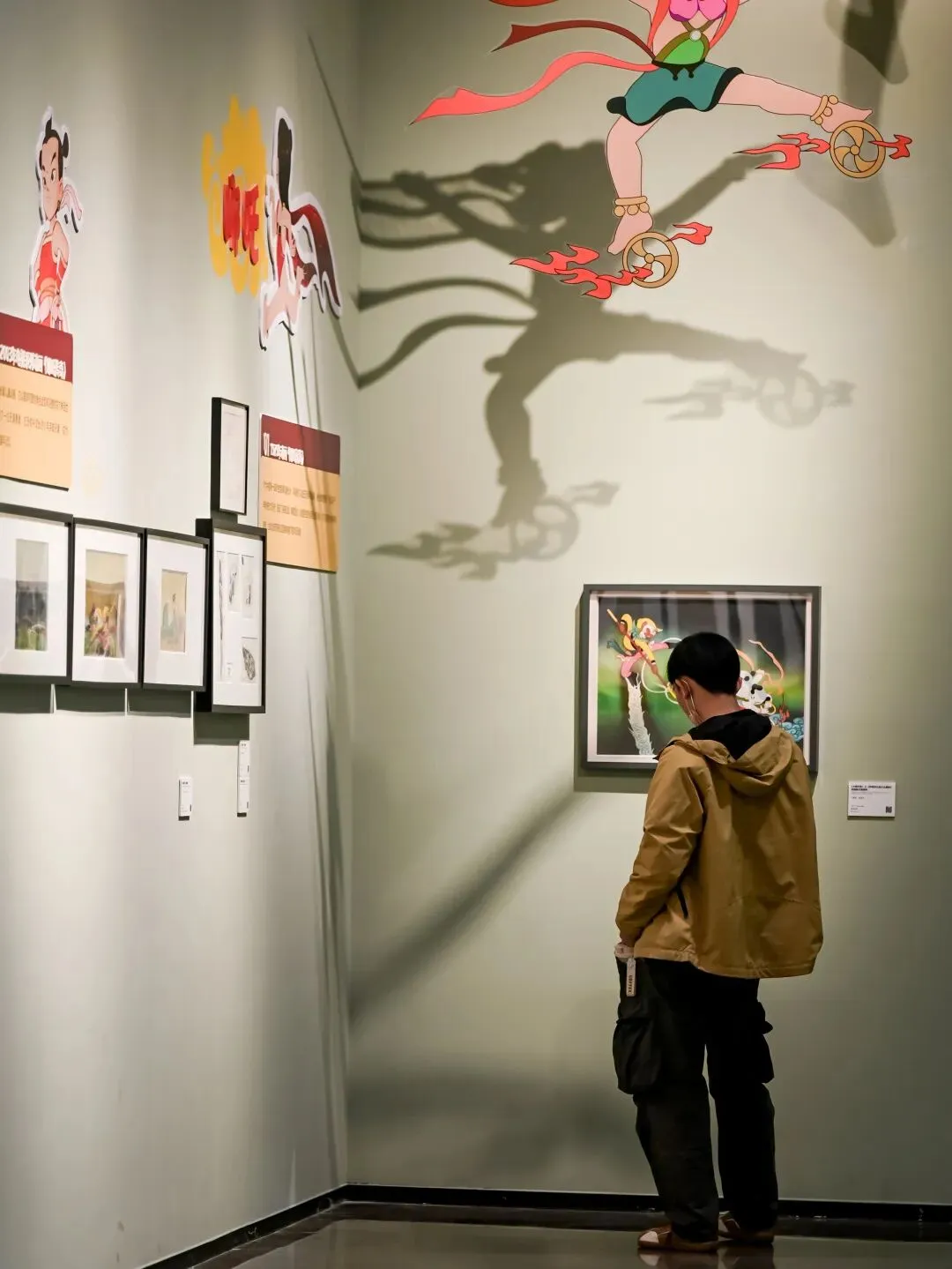 二三楼的展区被阳光铺满,随便往画作旁一站,就很好出片。