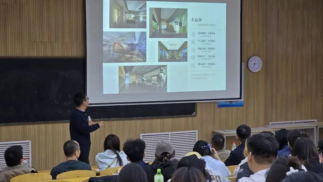 授课中,李程伟老师以 “讲故事” 为策展核心切入点,阐释了展览故事线的本质与创作逻辑,区分了金字塔式、平行式、阶梯式、立体式、沉浸式等多种故事线创作类型,并结合穆青精神教育基地、浙江上山文化考古特展、客家之源纪念馆等大量真实落地的经典策展项目,拆解了不同类型展馆的故事线设计思路、展陈架构与叙事技巧。同时,他还针对策展人所需的通感、归总、创意、创作等核心能力进行讲解,让师生们对展览策划的专业逻辑与实践要点有了直观且深入的认知。