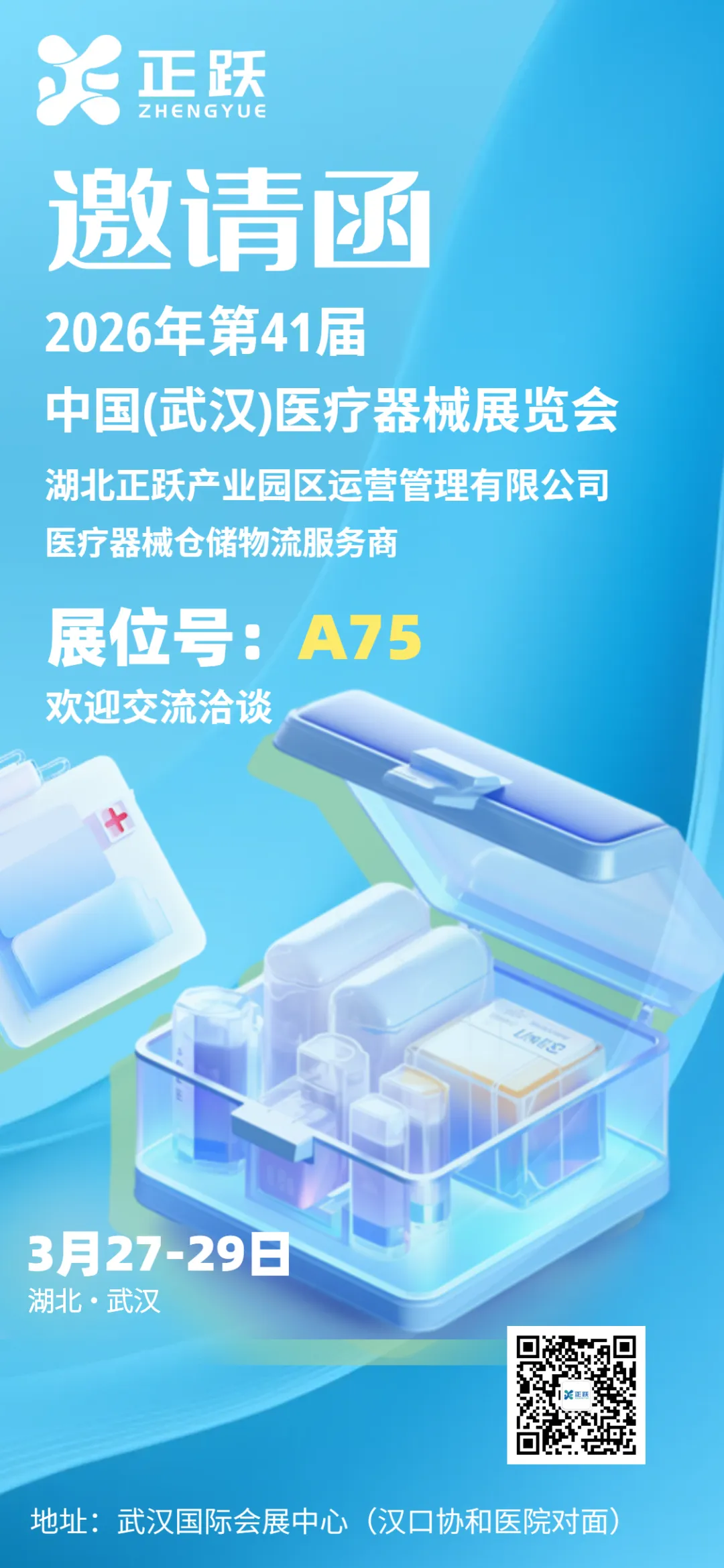 3月27日,2026年第41届中国(武汉)医疗器械展会正式拉开帷幕,展会期间,湖北正跃的展位前人头攒动。公司团队与来自全国各地的医疗器械行业同仁进行了深入交流,详细介绍了企业在医疗器械仓储物流领域的专业优势。