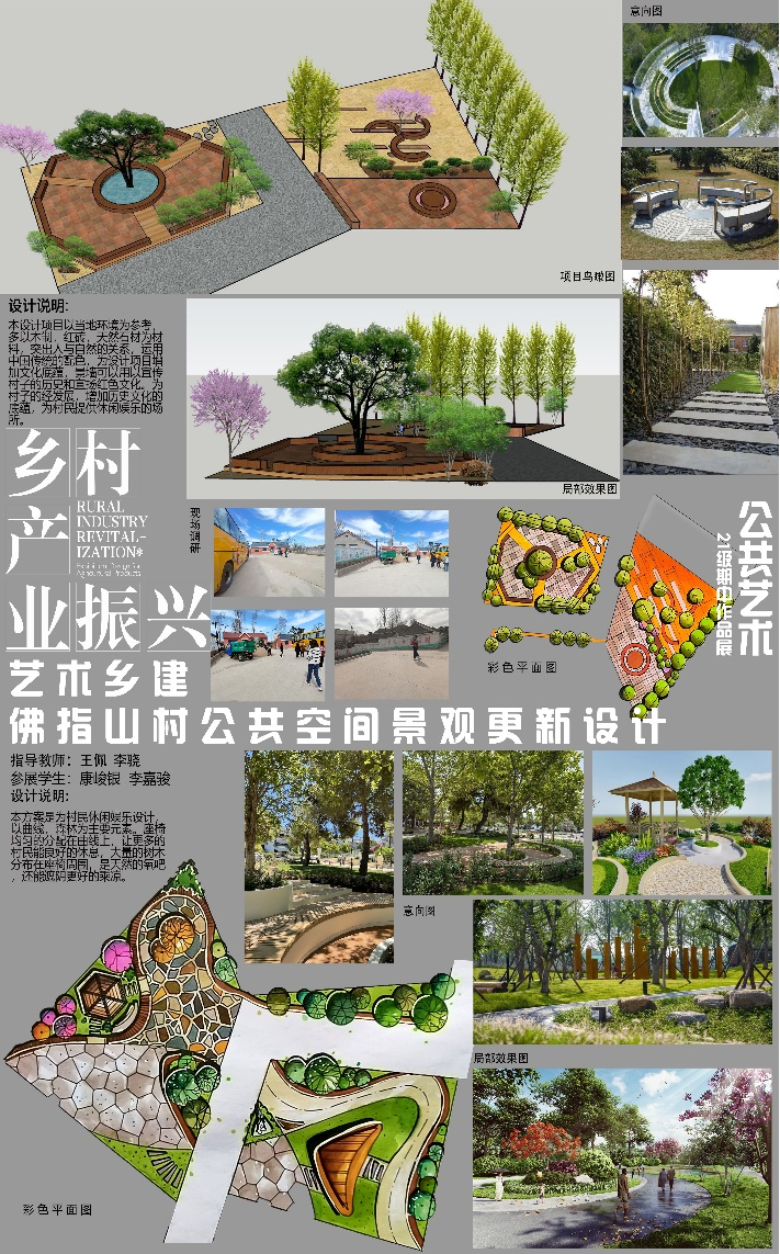城市学院在期中“项目包”建设中将乡村振兴项目融入到各个专业,进行了广泛的社会调研,听取了校企合作单位的指导意见,并将科研成果转化到教学中,指导学生完成项目设计。经过学院专业建设指导委员会的仔细论证,设定艺术与科技专业的项目主题为“乡村产业振兴——农特产品会展设计”,公共艺术专业项目主题为“乡村产业振兴——艺术乡建佛指山村公共空间景观更新设计”,环境设计专业项目主题为“乡村产业振兴——乡村旅游民宿设计开发”。