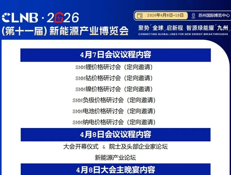 CLNB 2026(第十一届)新能源产业博览会将于2026年4月8日-10日,在苏州国际博览中心召开。展会将聚合全球1,500余家展商及参会企业,同时有超30,000人次专业观众,覆盖储能、电力、锂电回收、正极材料、矿业原料及固态电池低空经济等各大新兴领域。