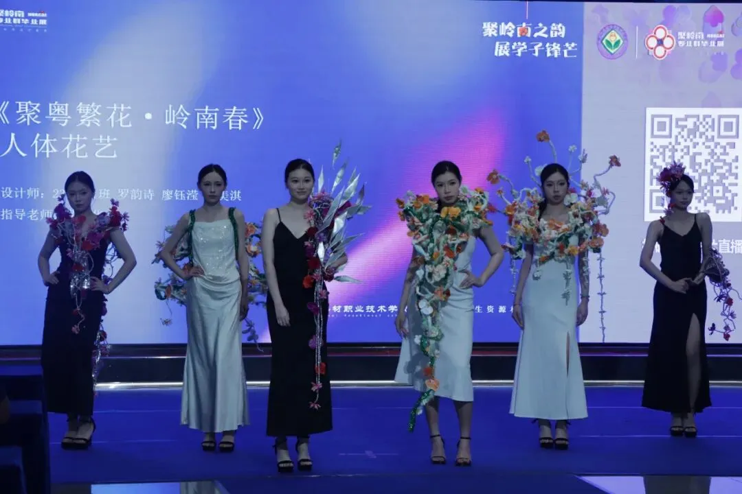 开幕式在庄严的国歌声中拉开帷幕。学校醒狮社带来了铿锵有力的表演,生动展现出岭南非遗的活力与美好寓意。随后,学生街舞团队以充满张力的舞蹈《Whiplash》,彰显了传统与青春碰撞所激发出的无限创意。活动的高潮环节当属服装模特走秀。毕业生们将岭南韵味巧妙地融入服饰设计之中,并联动花艺、彩灯等艺术形式,创作出一系列跨界时尚作品,实现了传统美学与现代生活的完美融合。
