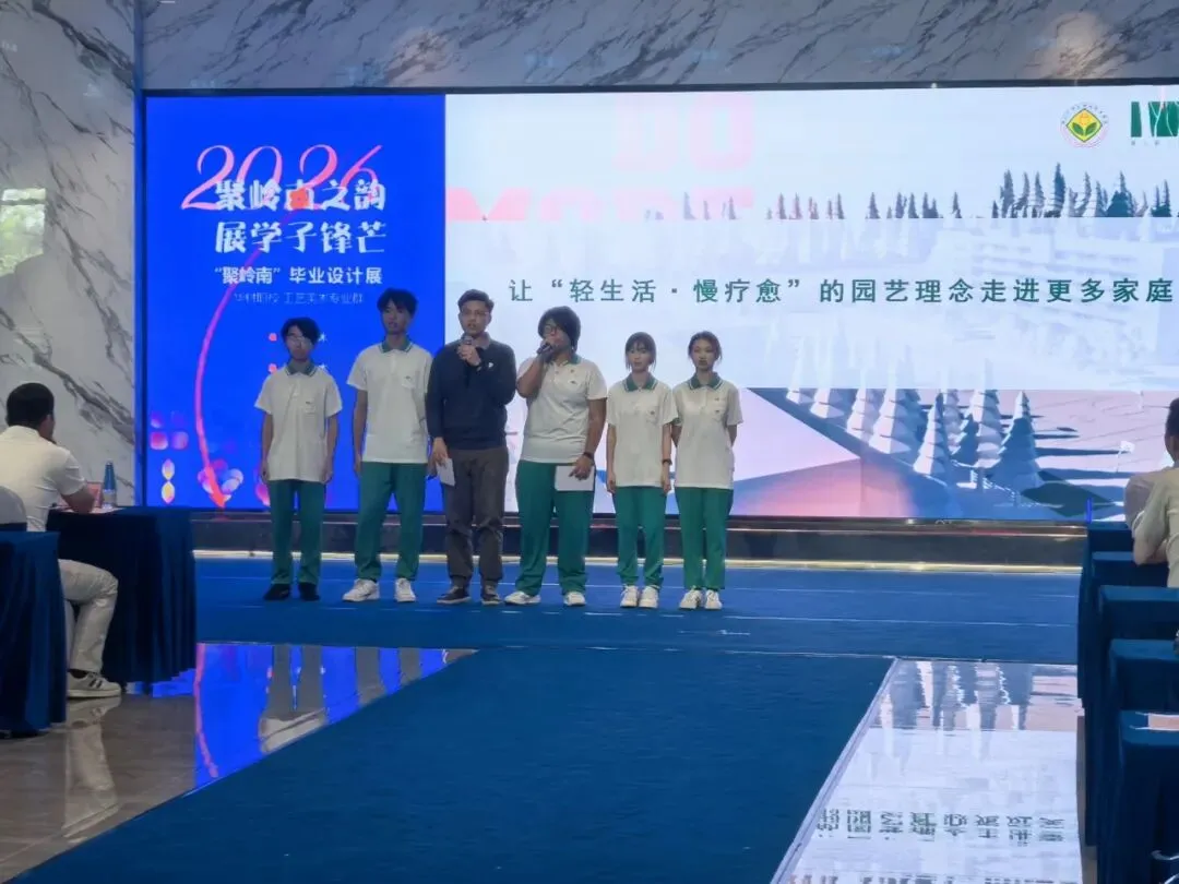 园林技术专业师生代表叶子龙老师与黄轩儿同学,以《家庭园艺1.0开发与未来展望》为题进行了汇报分享,展现了将绿色设计与生活美学相结合的创作思路与实践深度。