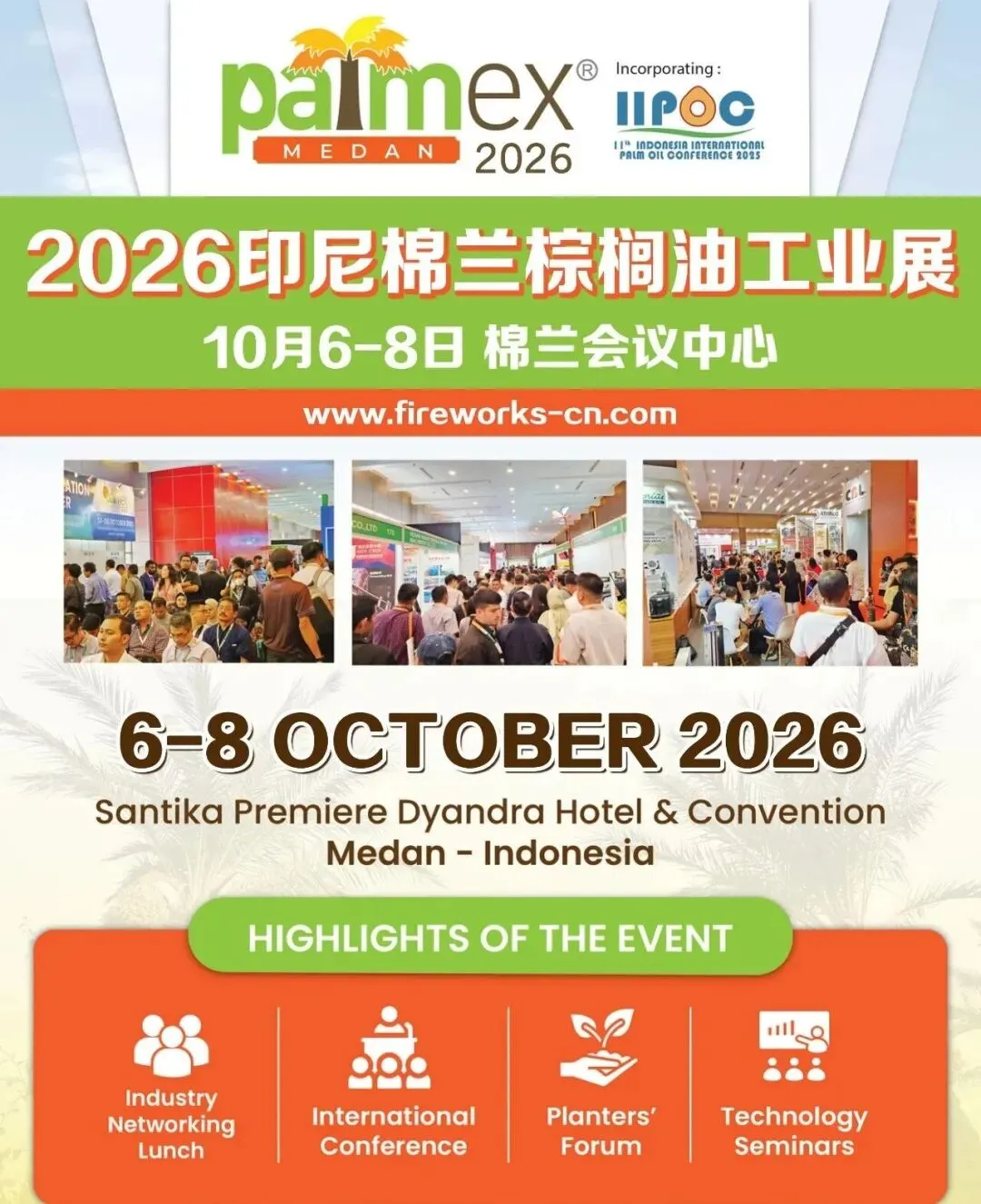 2026印尼棉兰棕榈油工业展由新加坡Fireworks展览集团主办,得到印尼棕榈油委员会、印尼工业部、亚洲棕榈油协会等官方机构强力支持,是全球规模最大、专业性最强的棕榈油行业展会之一,在棉兰连续成功举办了15届,是影响力最大展商反应效果最好的展会。