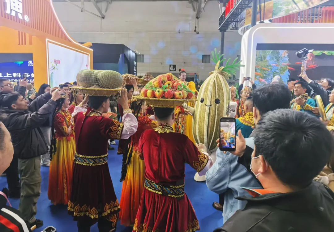 本届春博会上,岳普湖县以沉浸式展示与精准招商推介双线发力,不仅带来独具特色的文旅资源与奖励政策,更以丰富的现场互动点燃全场热情。灵动喜庆的迎宾舞《舌尖上的岳普湖》热情迎客,将岳普湖特色美食文化与民俗风情融为一体;可爱萌趣的岳甜甜、岳香香人偶,端庄优雅的达瓦昆公主轮番现场巡游,与参会嘉宾、观众亲密互动、合影打卡,生动传递岳普湖的热情与活力,成为春博会上一道靓丽风景线。