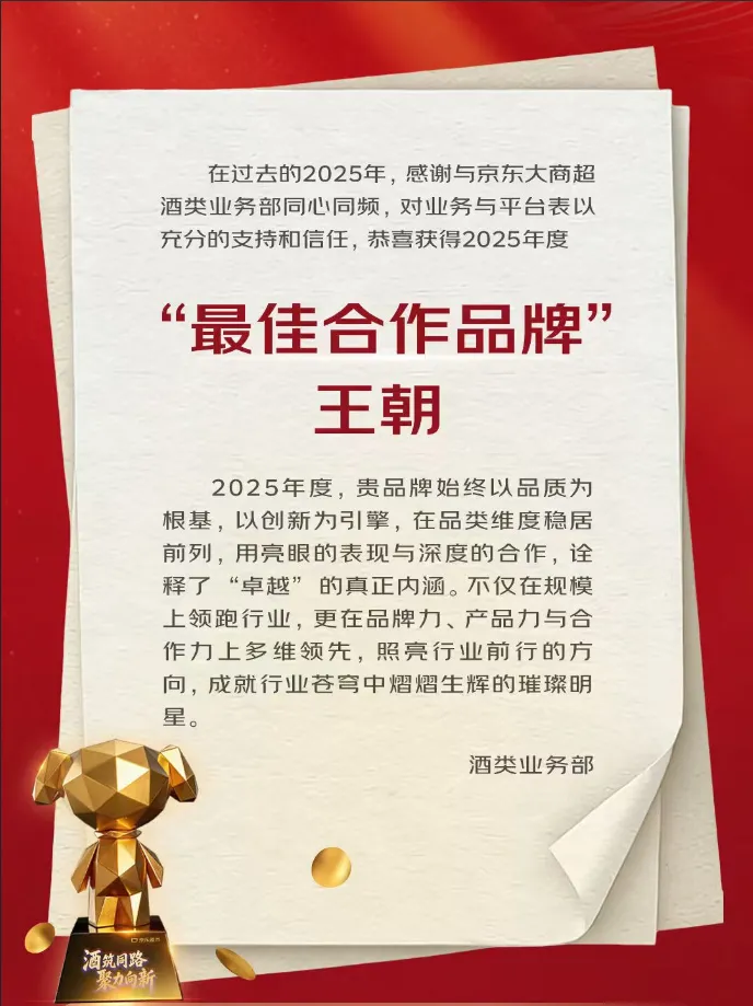 展会期间,王朝获得多项荣誉。贝丹德梭·中国将“年度最佳白兰地”授予王朝酒业锦邑桶藏12年XO白兰地;在“京东杯”WBO2025中国葡萄酒市场年度大奖评选中,“王朝”品牌荣获“十大影响力品牌”,王朝“嗨”系列成功入围“十大新锐产品”,并获评“京东酒部最佳合作品牌”;王朝5度玫瑰香低醇起泡葡萄酒、王朝东方汽泡酒·毛尖双双荣获2025青酌奖年度新品。多项权威认可,充分印证了王朝在产品创新与品质打磨上的持续深耕。