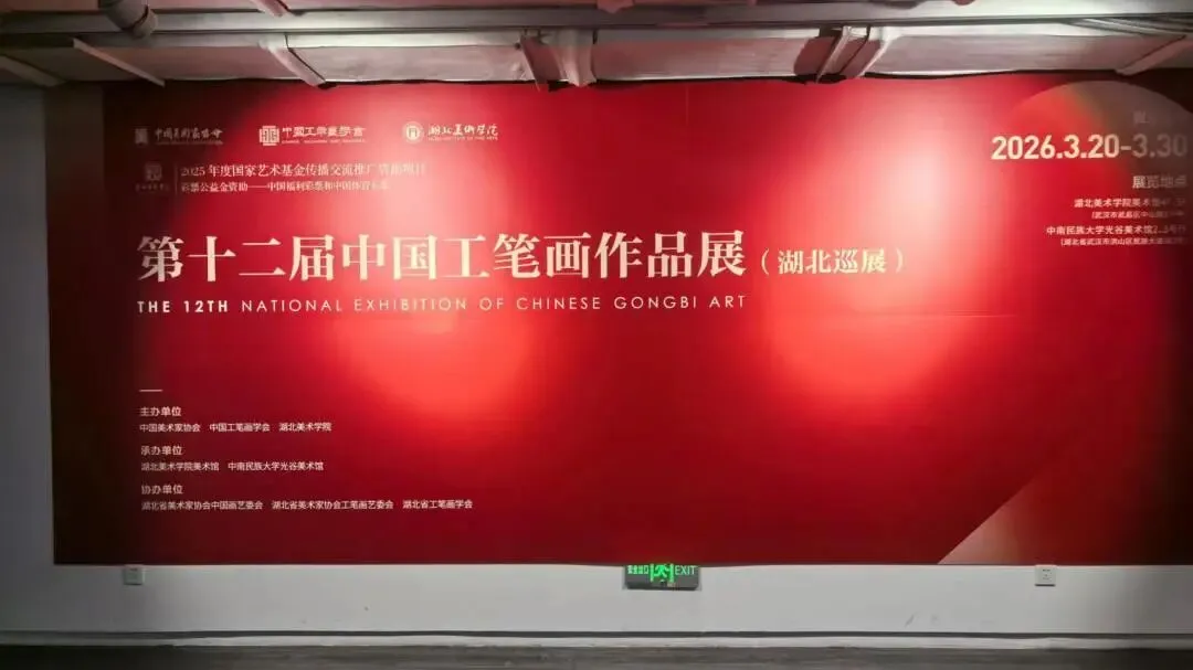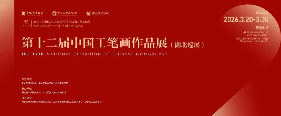 2026年3月20日至3月30日,由中国美术家协会、中国工笔画学会联袂主办的第十二届中国工笔画作品展(湖北巡展),在武汉精彩启幕。本次展览为2025年度国家艺术基金资助项目,也是全国巡展的重要一站,同步亮相湖北美术学院美术馆与中南民族大学光谷美术馆两大展区,以双馆联动的形式,为荆楚大地献上一场高规格的当代工笔画艺术盛宴。
