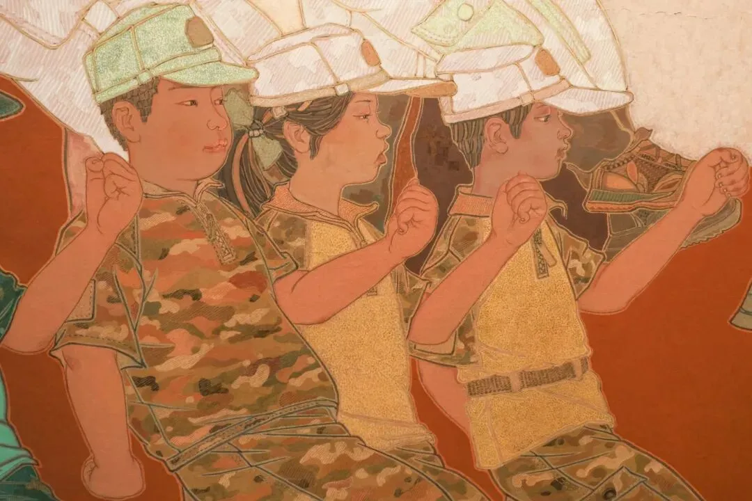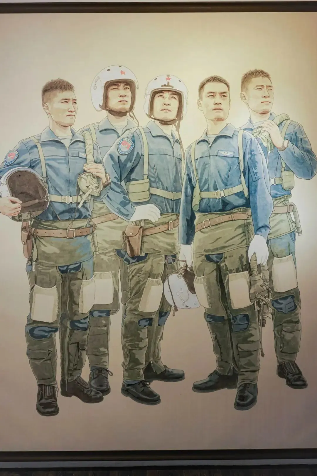 这些作品构成了此次展览的筋骨,《共享共进新时代》《医者仁心、生命之光》《致敬·航天之花》《第一梯队》……都带着时代的鲜明印记,将奋斗者的身影刻进工笔画的叙事里。