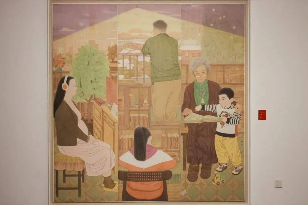 作品《暮雪》中,王玉晓用沉静的笔触、写实的语言,将温情烟火的家庭图景,诗意定格在三联画幅中,他画的是都市日常的相守相伴,也是平凡生活的温柔笃定。