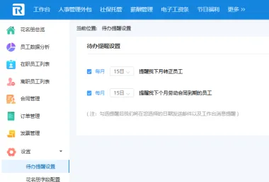 ?合同到期预警:默认每月15日邮件提醒HR续签合同,支持按项目周期自定义提醒时间,某施工企业使用后合同漏签率下降90%。
