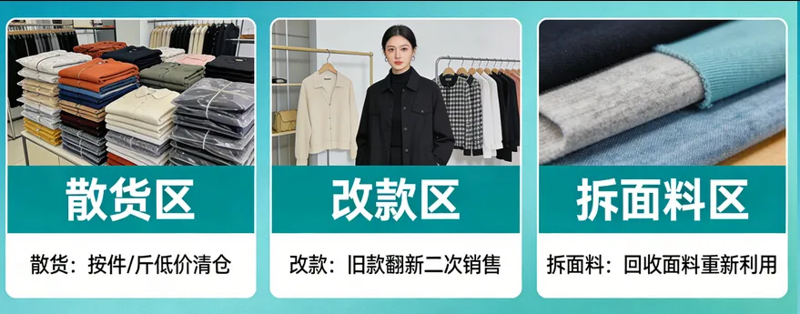 拆面料:如果款式不行了,但面料不错,就把面料拆下来。卖给做其他产品的工厂,或者自己做成别的品类。