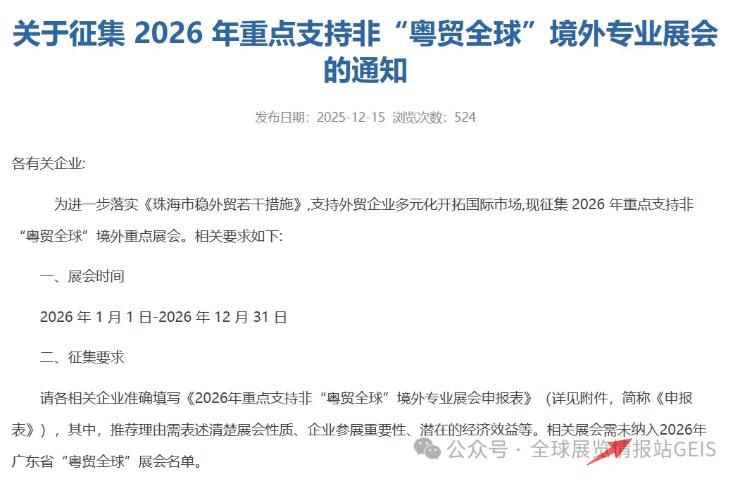 关于征集 2026 年重点支持非“粤贸全球”境外专业展会的通知