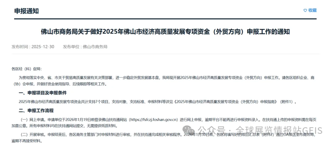 佛山市商务局关于做好2025年佛山市经济高质量发展专项资金(外贸方向)申报工作的通知
