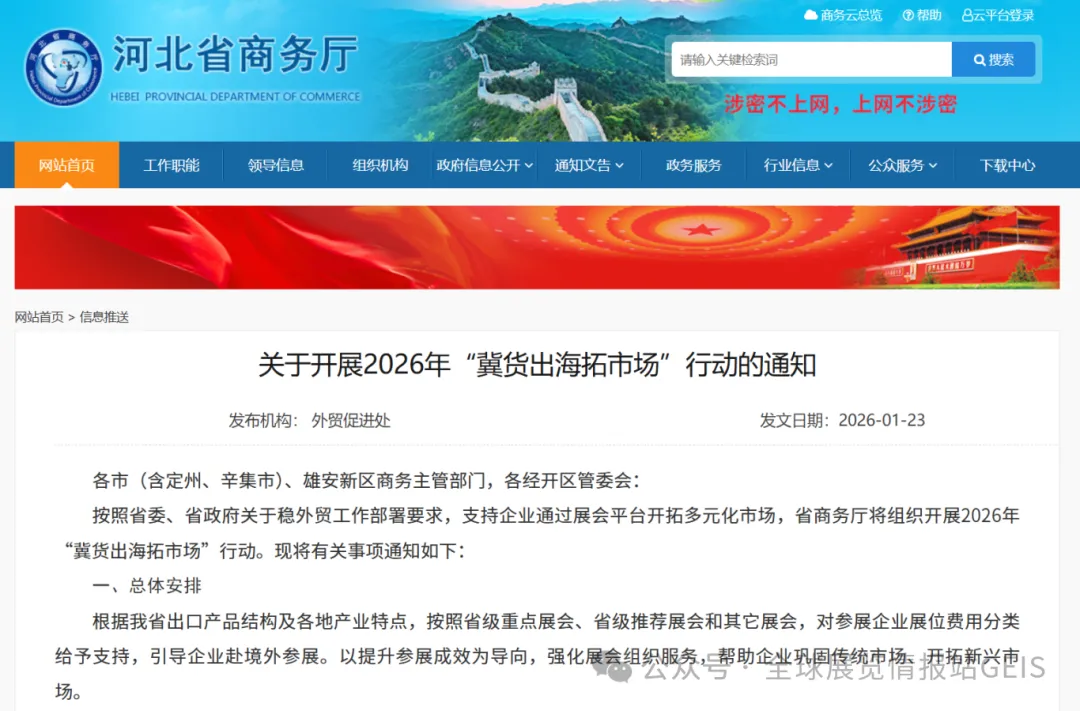 《关于开展2026年 “冀货出海拓市场” 行动的通知》
