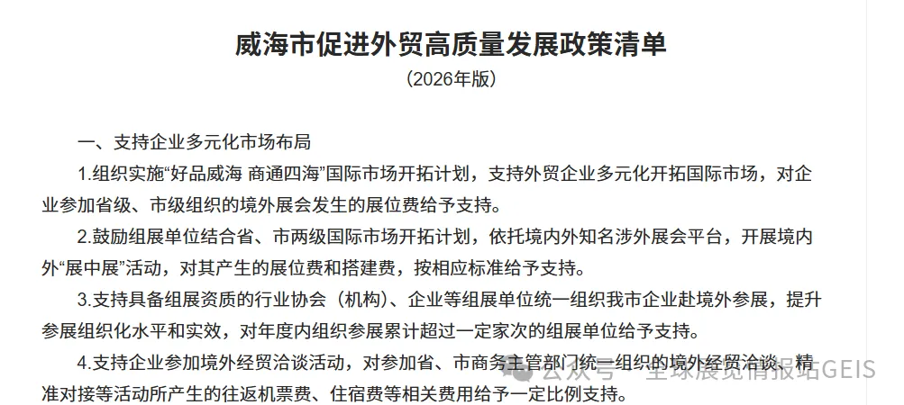 《威海市促进外贸高质量发展政策清单 (2026 年版)》