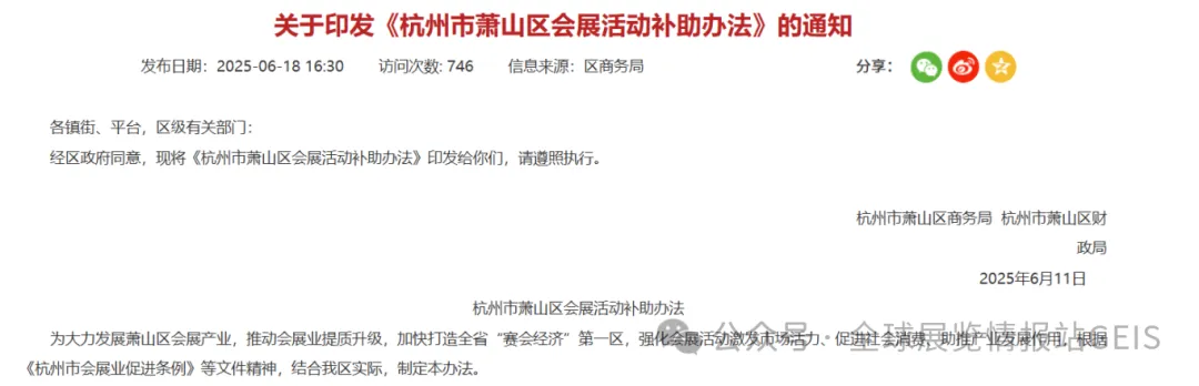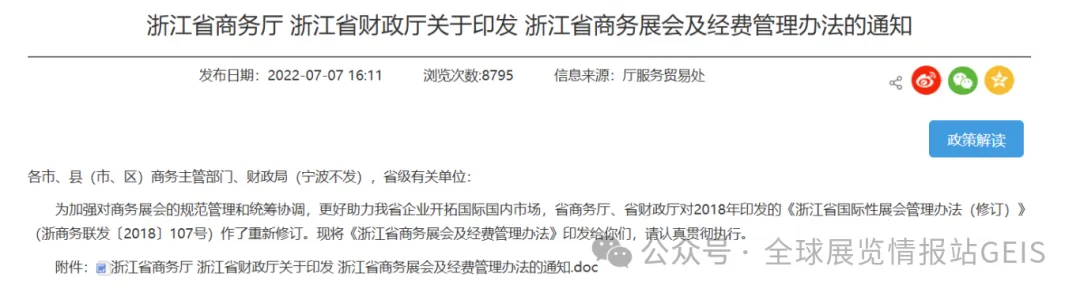 2026 年 2 月安徽省政府发布《关于巩固拓展经济稳中向好势头若干政策举措》,在展会补贴基础上,新增外贸领域配套支持政策,进一步强化展会赋能: