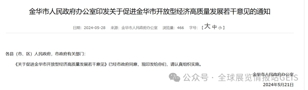《关于促进金华市开放型经济高质量发展若干意见》