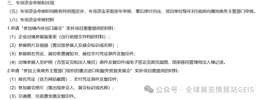 注:展览 / 会议均要求一年多届 / 多次仅补助 1 次,且展览需为专业场馆举办、展期≥2 天的贸易 / 消费类展。