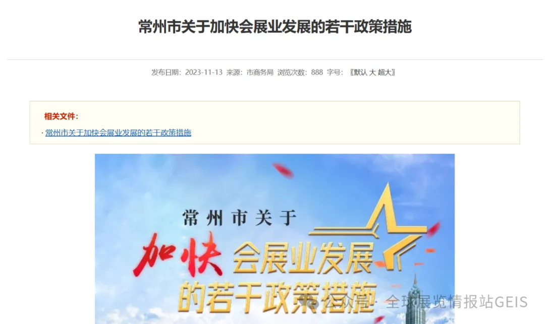 《常州市关于加快会展业发展的若干政策措施》(2023 年 11 月发布,长期有效)