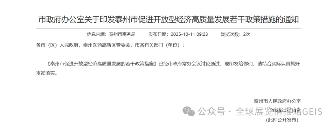 泰州市 2026 年未发布全新专项政策文件,而是延续执行 2025 年 7 月发布的核心政策并同步衔接江苏省 2026 年贸易促进计划;2026 年第一批申报工作预计于上半年启动,目前可按现行政策标准提前准备材料。