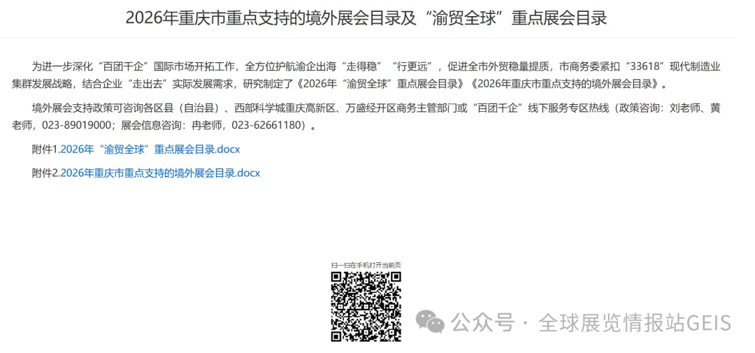 2026年重庆市重点支持的境外展会目录及“渝贸全球”重点展会目录