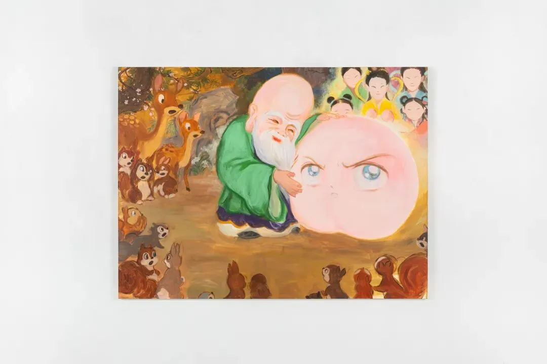 刘茵,《寿星和桃》,2026,布面丙烯,150 x 200 cm