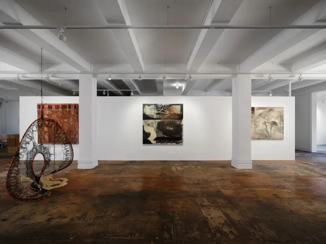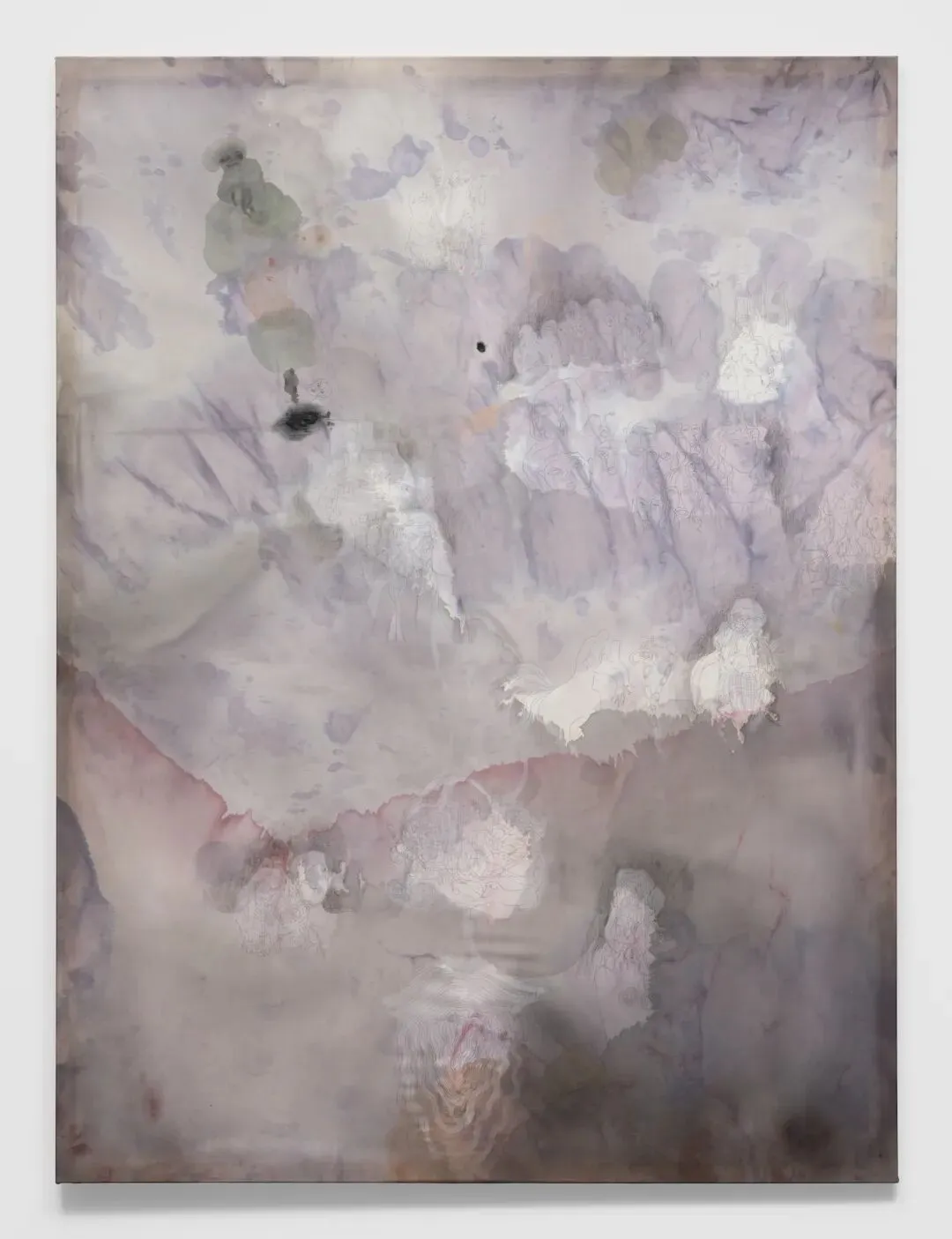 罗莎里奥·索拉昆,《Ties》,2025,纱布上墨水、丙烯及炭笔,195.6 x 127 cm
