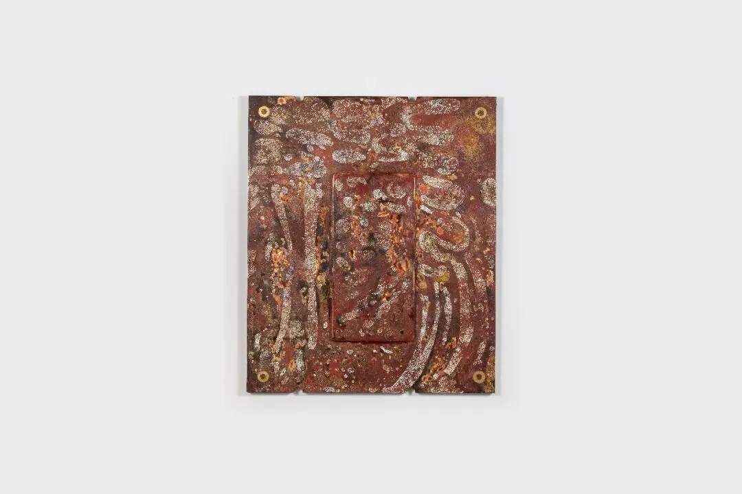 琪雅·法里亚,《Ebay Fossil》,2025,油彩、丙烯于雕刻桦木,76.2 x 76.2 cm