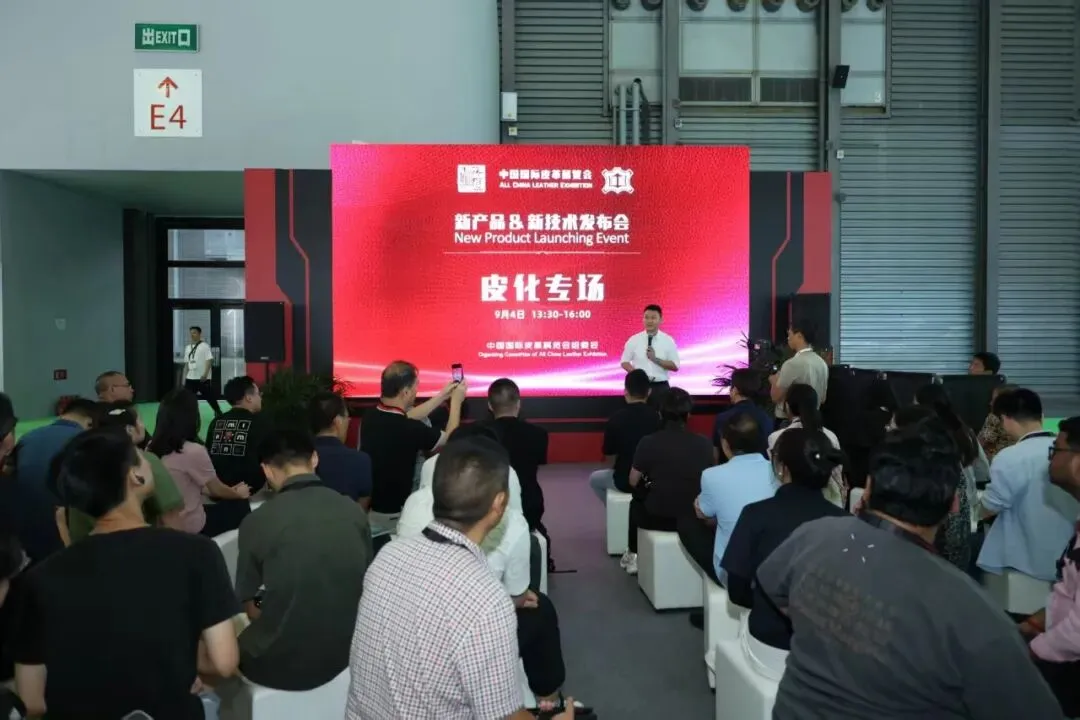 9月4日下午,2025中国国际皮革展览会新产品&新技术发布会皮化专场在中国国际皮革展览会上举办,参加展会的部分展商代表、观众参加了发布会。发布会由中国皮革协会产业部主任周诚主持。四川达威科技股份有限公司研发总监助理李媛媛、山东皓尊生物科技有限公司销售总监崔景波、山东黎宁科技新材料有限公司大客户部副总经理纪坤、上彬化学科技(上海)有限公司产品经理雷金涛、汉宁化学(上海)CTO唐振宇、淄博沂化新材料有限公司研发部经理崔明月分别发布了各自公司的新产品、新技术。
