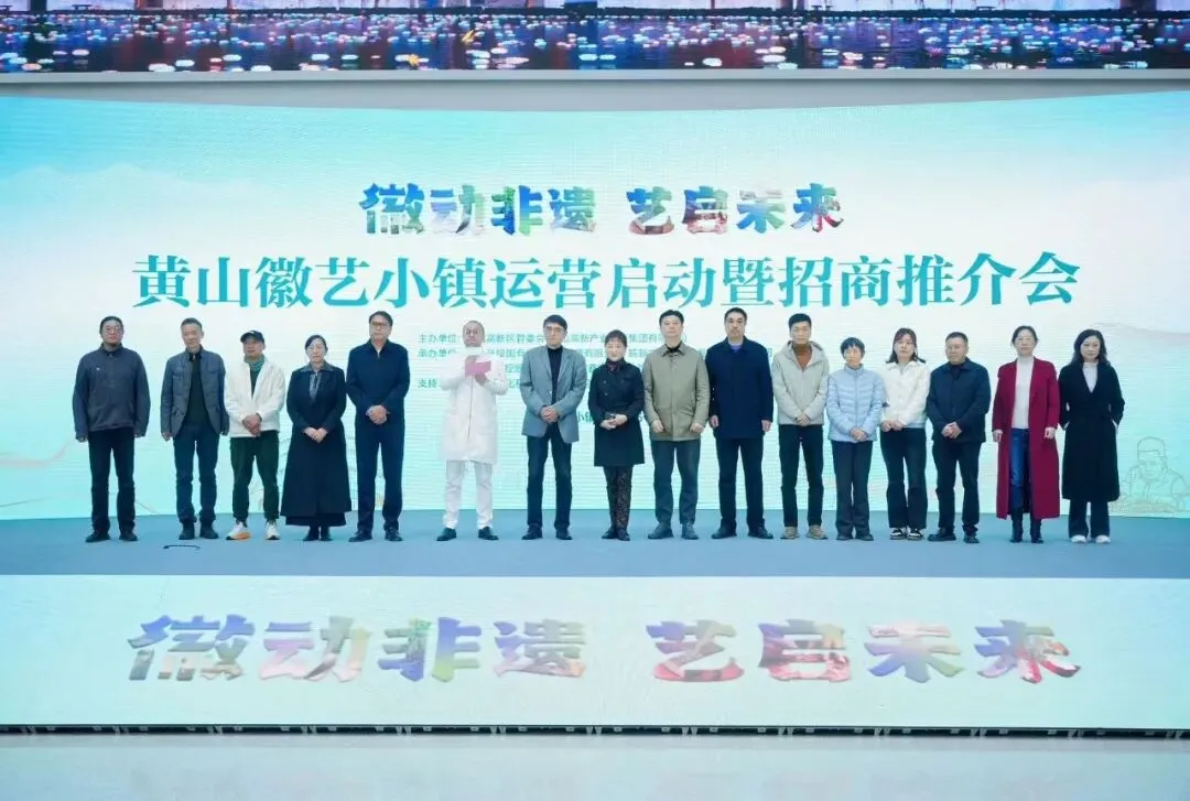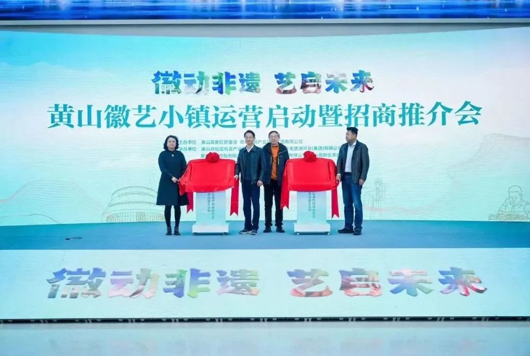 2026年3月27日,黄山徽艺小镇运营启动暨招商推介会在小镇隆重举行。本次活动由黄山高新区管委会、黄山高新产业投资集团有限公司主办,黄山开投国有资产运营管理有限公司、皖新文化旅游开发(集团)有限公司等联合承办。非遗大师、文旅企业、行业协会及主流媒体代表等百余人齐聚现场,共同见证徽艺小镇正式启动运营。