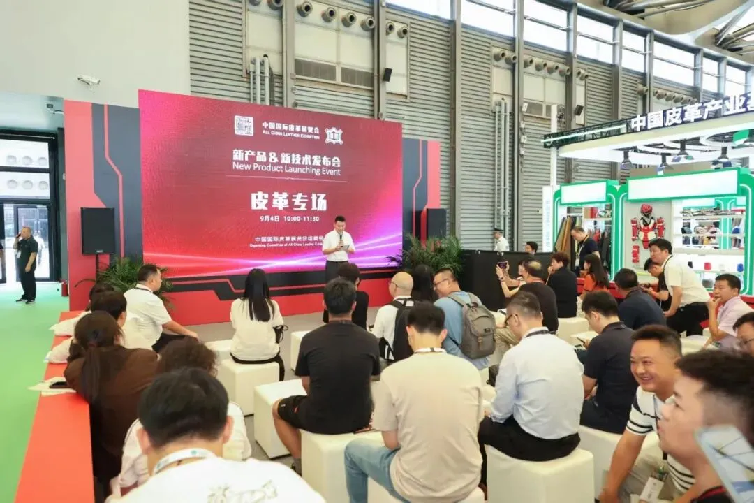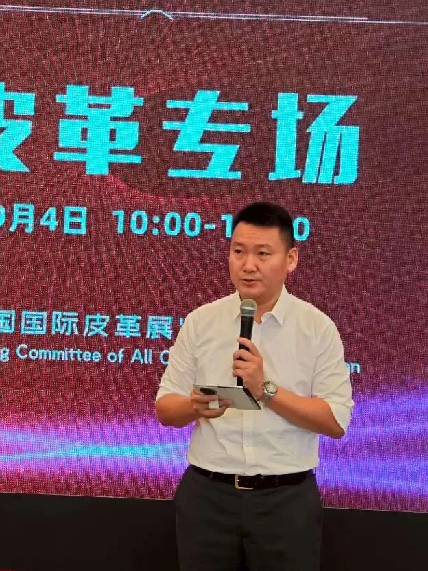 9月4日上午,2025中国国际皮革展览会新产品&新技术发布会皮革专场在中国国际皮革展览会上举办,参加展会的部分展商代表、观众参加了发布会。发布会由中国皮革协会产业部主任周诚主持。兴业皮革科技股份有限公司技术中心副总经理温会涛、烟台制革有限责任公司总经理于爱凤、广州正一皮业有限公司研发经理潘秀慧、河北安迪新材料科技有限公司副总经理侯旭东分别发布了各自公司的新产品、新技术。