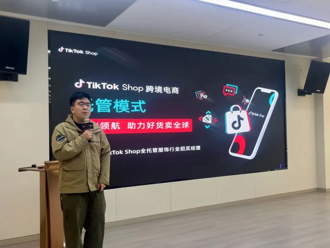 活动伊始,来自TikTok Shop全托管服饰行业招商经理刘人杰率先登台,对欧洲本地托管这一全新模式进行了深度拆解。面对2026年7月即将实施的小包关税政策,他直言传统跨境链路面临成本重构的挑战,而“本地托管”正是破局的关键。