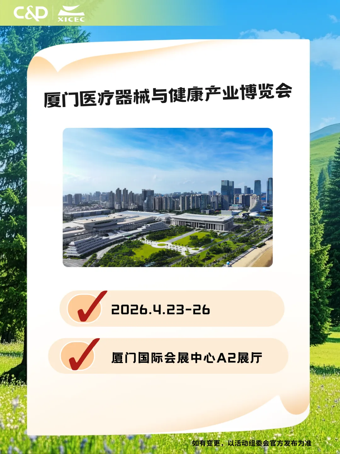 ? 厦门医疗器械与健康产业博览会⏰ 时间:2026.4.23-26? 地点:厦门国际会展中心A2展厅