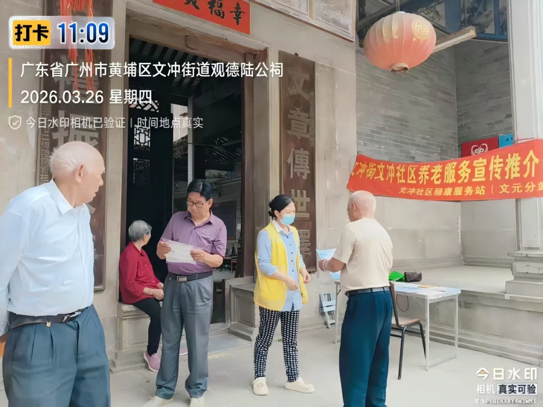 为深入落实广州市养老服务相关政策,打通社区养老服务“最后一公里”,让辖区老年居民全面了解家门口的养老服务资源,3月26日,文冲街文冲社区颐康服务站(文元分站)在观德陆公祠开展养老服务宣传推介会,同步为长者提供免费血压检测服务,把贴心关怀送到长者身边。