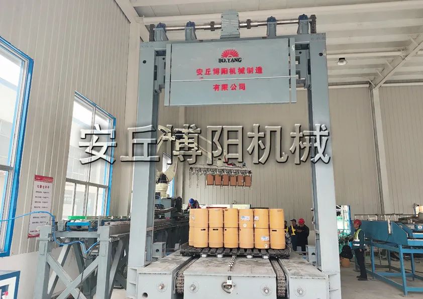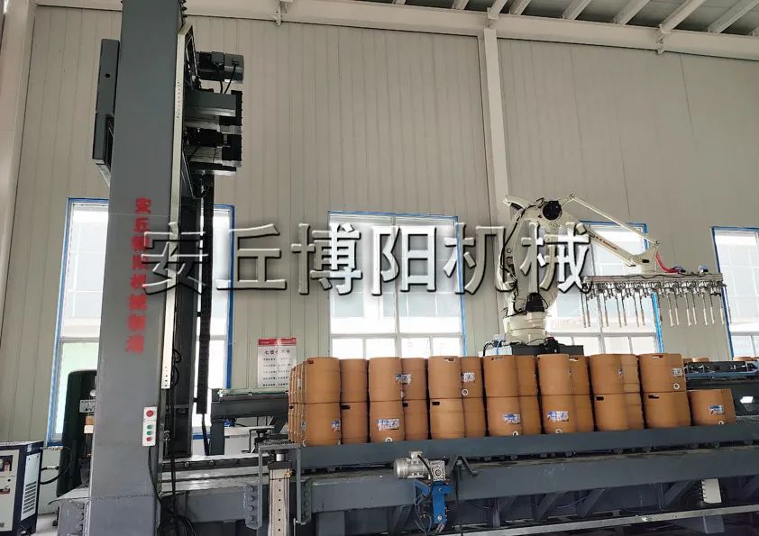 不需要人工,就可以把桶装白酒整齐的码垛到车子上,工作人员也不用直接接触桶料,一切都是全自动化的,我们的装车机是非标定制的,根据用户的需求可以设置码垛几层码垛多高。