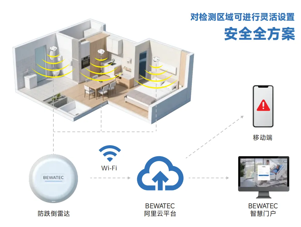 核心功能:跌倒告警+驻留告警(超时未动),覆盖“突发跌倒”与“长时间卧床异常”。