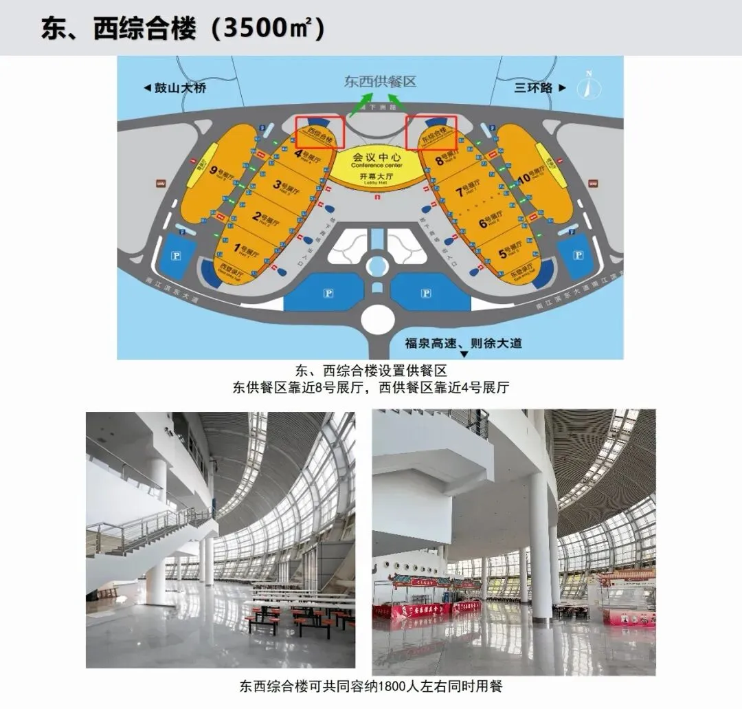 为进一步满足不同展会、活动期间的餐饮需求,确保参会人员的餐饮体验与会展中心的高品质服务相匹配,我司针对东西综合楼餐饮区合作商进行公开招募。餐饮展区位于福州市仓山区城门镇南江滨西大道198号海峡国际会展中心东西综合楼,具体位置如下:
