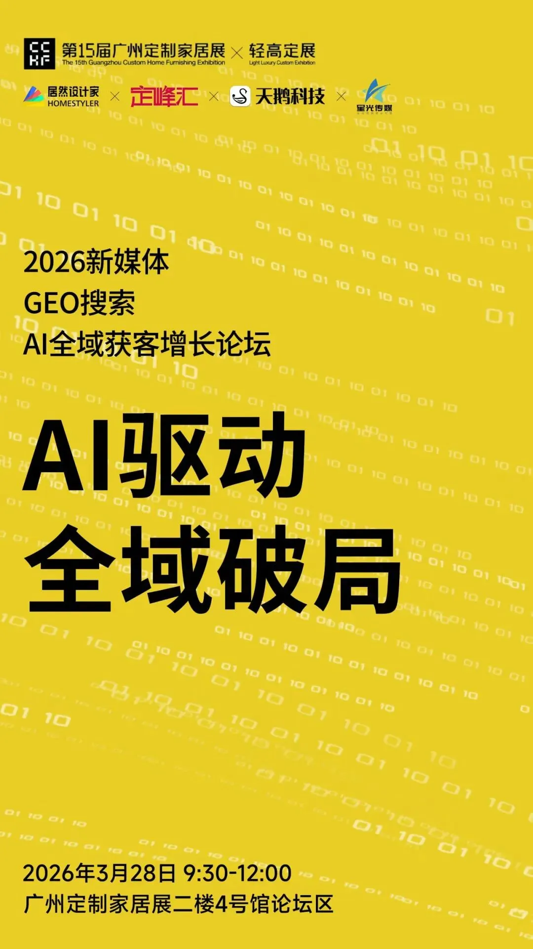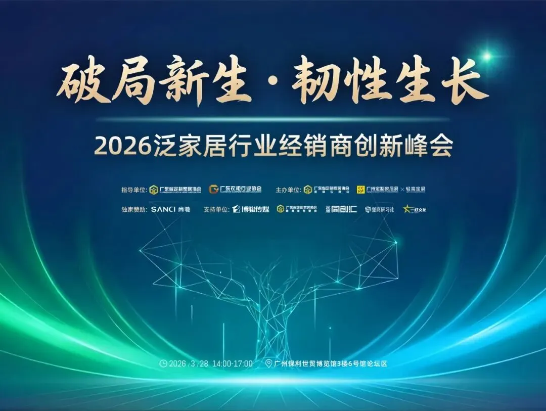2026年3月28日,由广东省定制家居协会强商专委会、广州定制家居展、博骏传媒联合主办的“2026中国泛家居行业经销商创新峰会”将在广州保利世贸博览馆举行。峰会以“破局新生·韧性生长”为主题,直击存量市场下经销商面临的流量枯竭、利润下滑等核心痛点。大会颠覆传统模式,首创“经销商主讲、品牌方聆听”的干货分享形式,聚焦新媒体获客、团队管理等实战议题,为全国经销商搭建高价值的学习交流与资源链接平台。